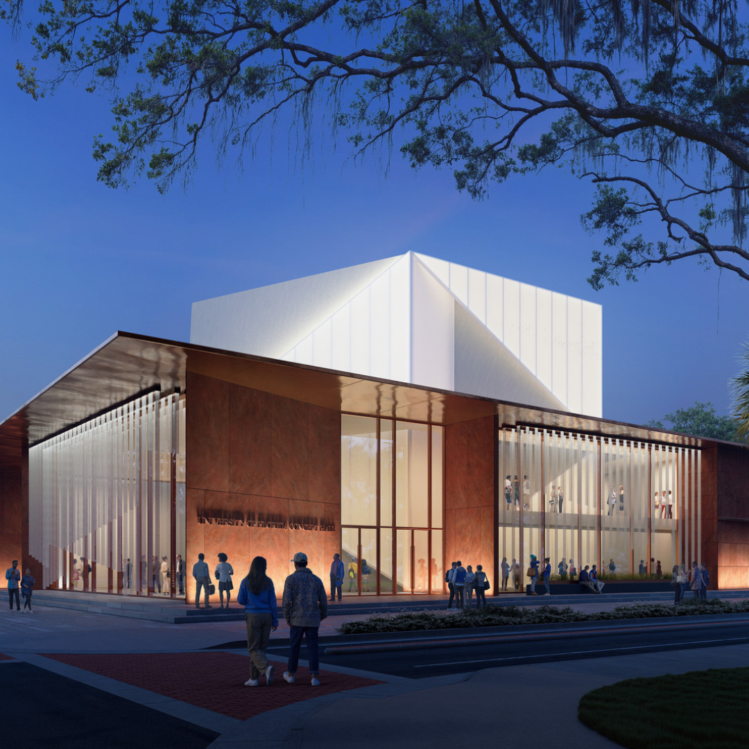 Bora has been selected from among top-notch competitors to design the new School of Music for the University of Florida. This long-anticipated project will advance the school’s vision for a world-class facility to support its growing program, creating premier spaces for teaching and learning, an immersive wood-lined 500-seat concert hall with views to nature, and site connections engaging surrounding courtyards and a future plaza. A collaborative effort with Walker Architects of Gainesville, the effort involves a renovation of the existing 1971 facility and a modern new addition, leveraging an origami-inspired theme as a nod to the “unfolding” of the School’s new identity and a reference to the angularity of the existing structure.